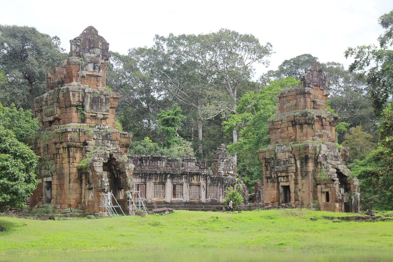 It appears that the South Khleang was unfinished and left in an incomplete state. When viewed from a distance, The Khleangs appear elegant, dominating a lush landscape, but are somewhat less remarkable when viewed up close.